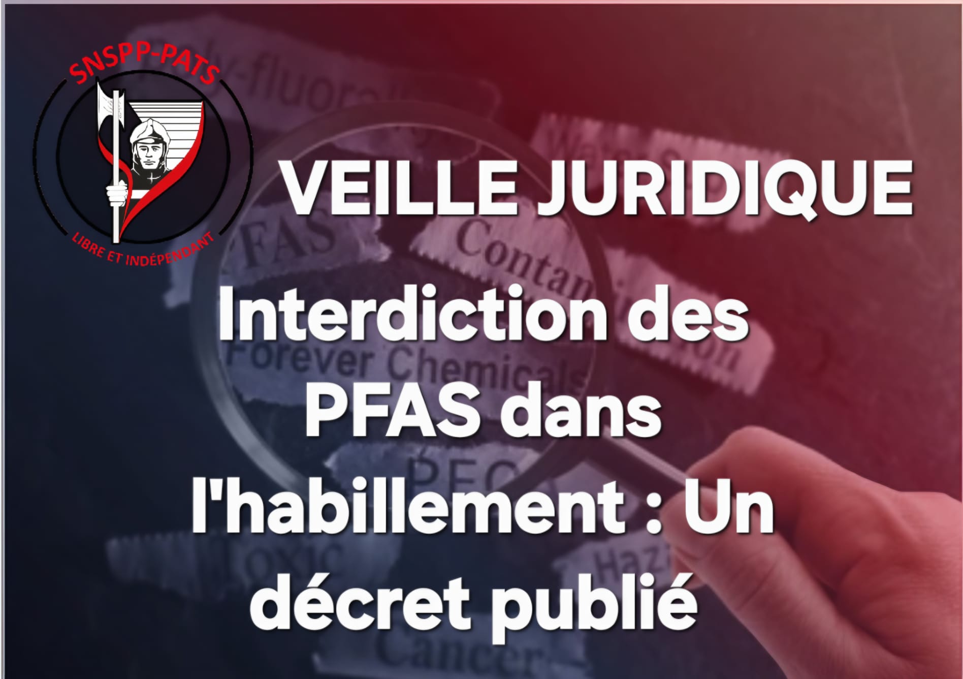 Cette interdiction ne vaut malheureusement pas pour les tenues des sapeurs-pompiers et plus généralement pour les textiles et équipements utilisés dans le domaine de la sécurité civile. Dans les autres domaines, il est impératif de mettre en place cette interdiction au moment de l’instruction administrative (CCAP – CCTP) des renouvellement de marchés publics. La formation spécialisée du CST doit être saisie afin que cette intediction soit commmuniquée à tous les agents du SDIS (SPP et PATS).